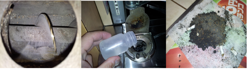【エスクリーン 回収レール清掃剤】 薬剤が染み込んだ専用クリーナーを吸殻自動回収装置のレールに投入し、回収レールを清掃し消臭します。 レールの中はニオイの元となる灰や、こぼれたジュースで汚れが溜まっており、これがもとでレールの詰まりや きしみ音の発生、故障の原因にもなります。 使用方法はシンプルで、吸殻回収ボックスの一番遠い灰皿からクリーナーを80~100cc投入するだけ。 柔らかい素材で出来ている為、回収装置に無理な負荷をかけません。 溜まっていた灰はクリーナーに付着されるだけではなく、液剤の水分が灰をまとめてくれて回収ボックスへと 流れて行きます。また、クリーナーには消臭液も入っている為、ボックスに回収されても消臭効果を発揮します ので、そのままで当日、翌日営業して頂けます。1タンクで、約25レーンに、使用出来ます。 |